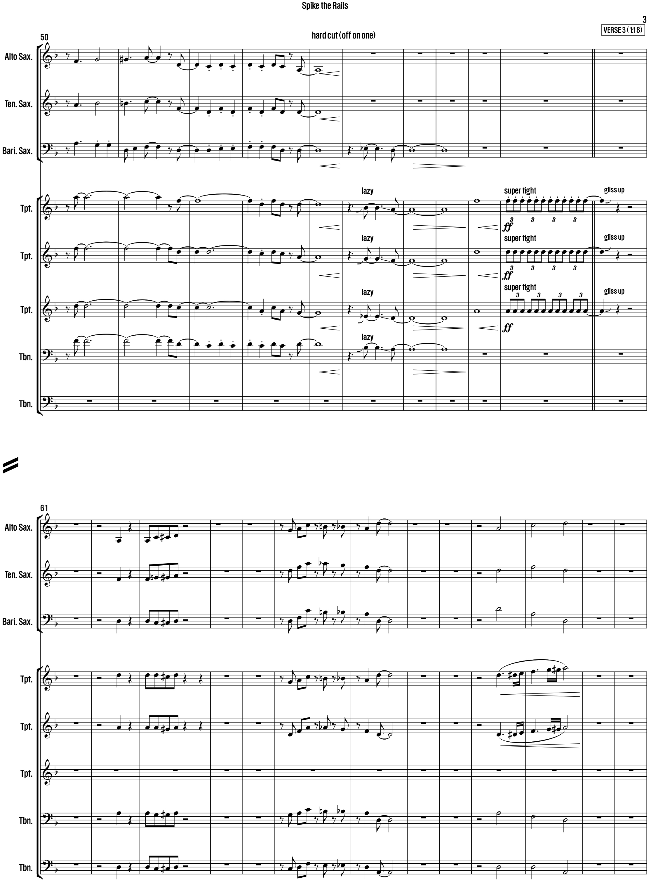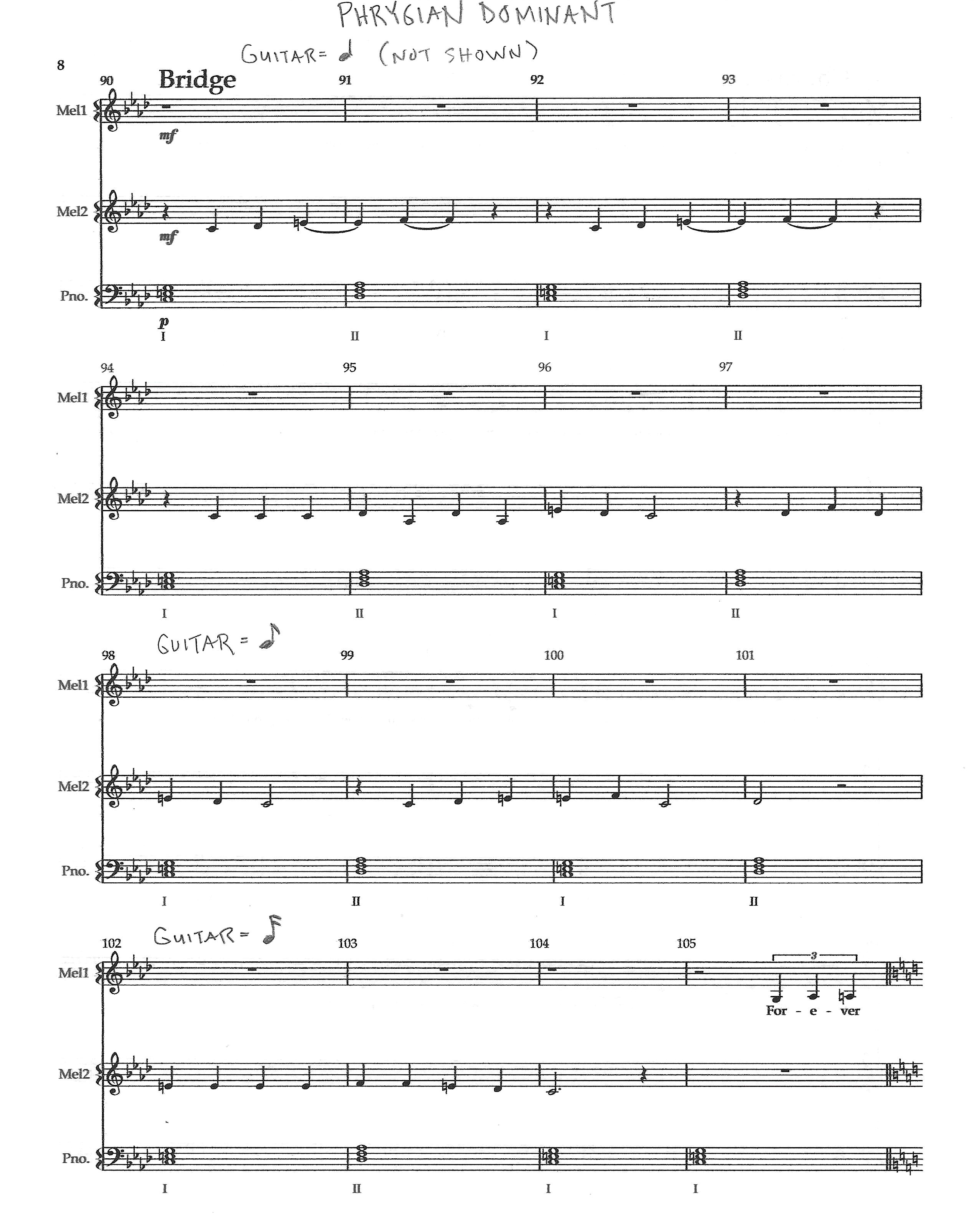 Also, you will hear a guitar synth part in the BRIDGE that is not included in the notation, but it is mentioned in the score notes.