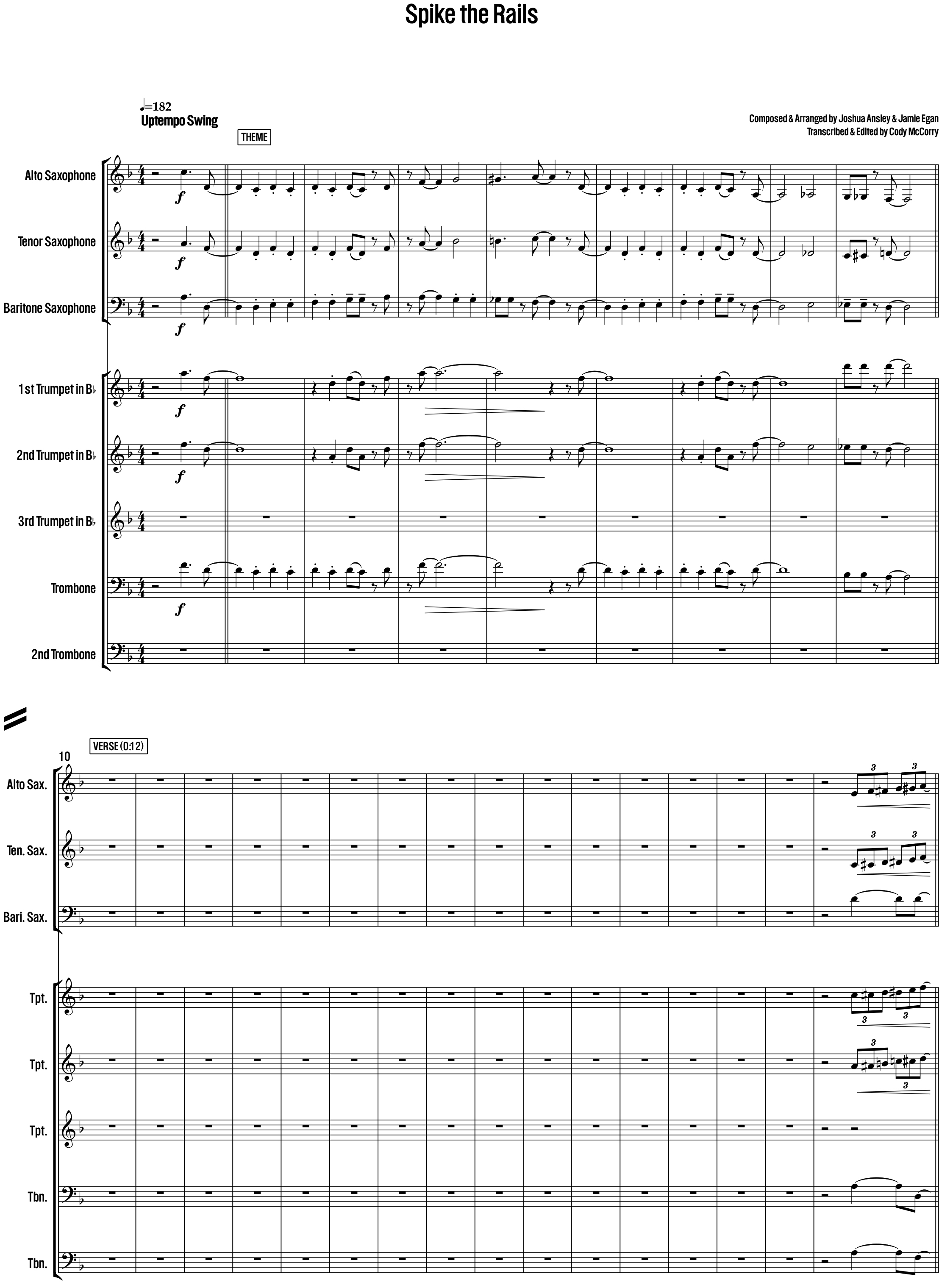 Josh spent his early adulthood touring and performing with popular acts such as Catch 22, Hurt and Streetlight Manifesto. He has since taken interest in teaching and therefore some theory. Now he shares a song from his new project, Least of Thieves. "Spike The Rails" is a song about how both parties in dysfunctional relationships can set themselves up for distruction with their own manipulations. And "that's how we derailed the trail". This song moves, like a proper locomotive, at break neck speeds while spewing clouds of grit! It's in the key of Dm and mainly stays there. The sections are separated by a jarring Neapolitan chord with an added 6 and 2. With as many as 9 nine layers, the horn arrangement really stands out on this one. See lyrics and arrangements below!